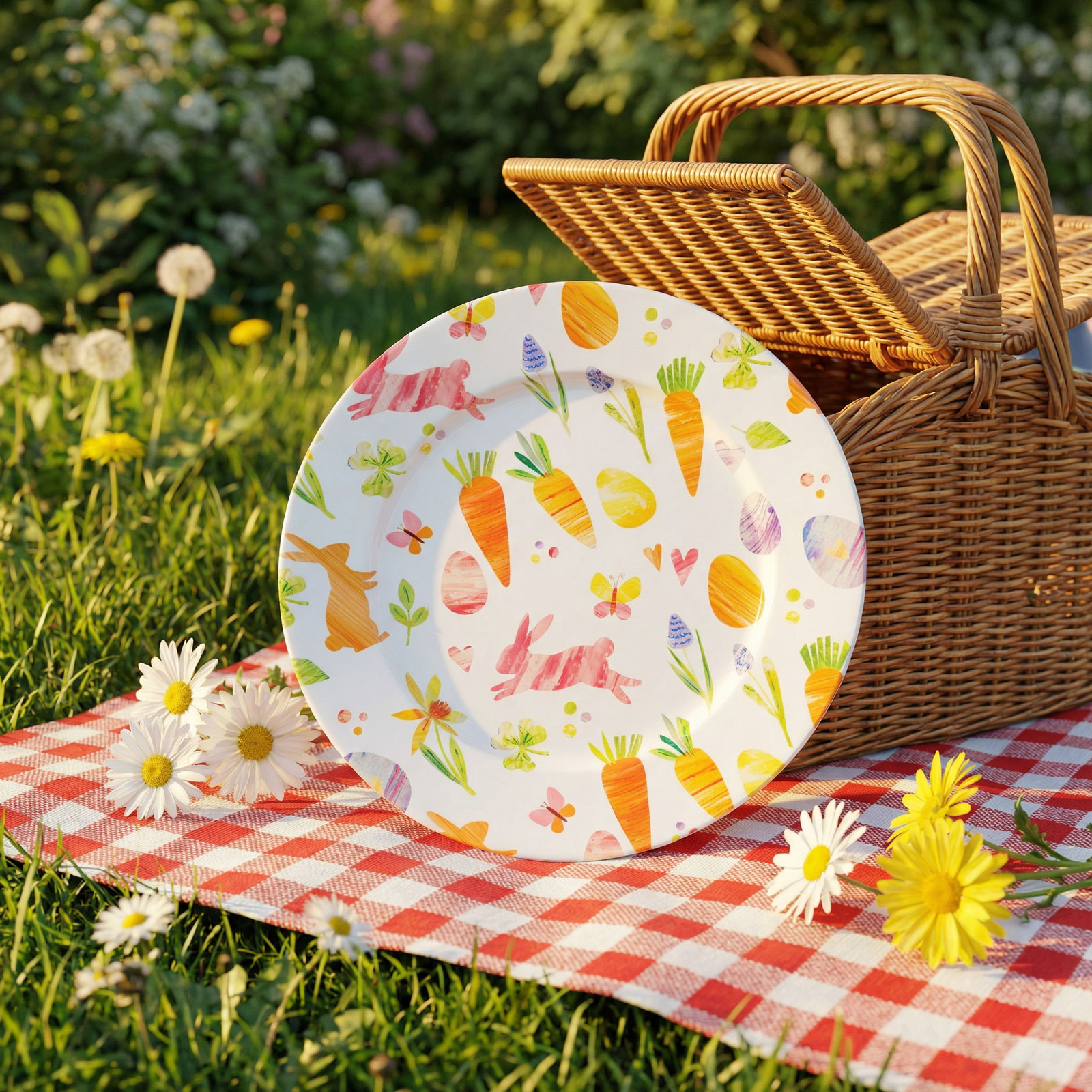 Vneste na svoj stôl veselú jarnú atmosféru s týmto kovovým tanierom s veľkonočným motívom! Tanier zdobia mrkvy, zajačiky a farebné veľkonočné vzory, ktoré z neho robia jedinečnú dekoráciu a sviatočnú servírovaciu misu. Je vyrobený z odolného kovu, takže ho možno dlhodobo používať na aranžmány, prestieranie alebo ako samostatnú stolovú ozdobu. Ideálna voľba na veľkonočné pohostenie, darček alebo doplnok jarných dekorácií.