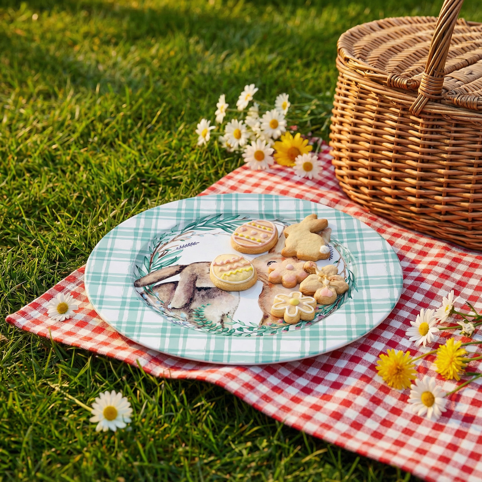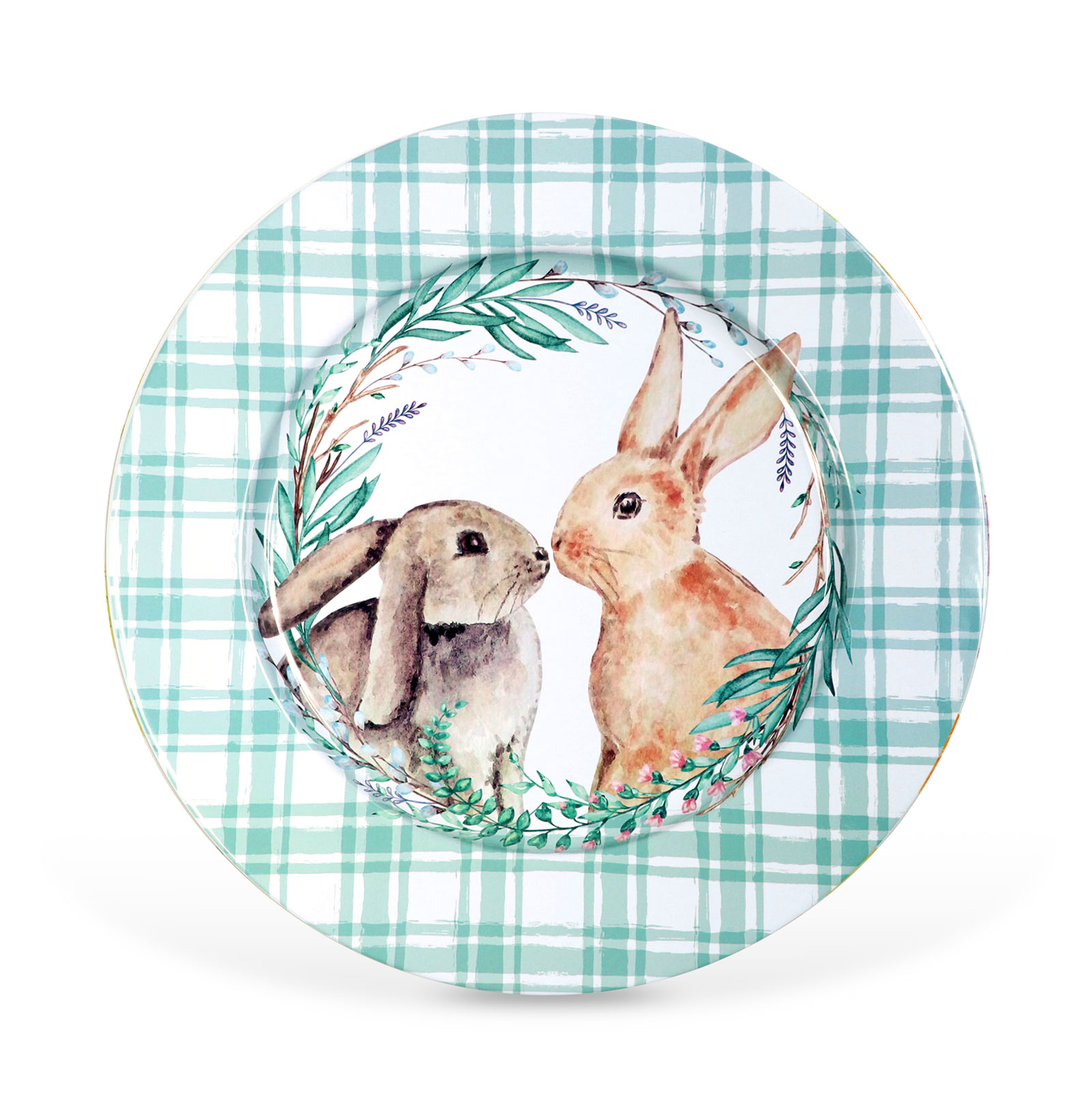 Zvýraznite svoj sviatočný stôl touto pôvabnou veľkonočnou miskou so zajačikovým motívom! Kovový dekoračný tanier je elegantným doplnkom veľkonočného prestierania. Károvaný vzor a roztomilý zajačik uprostred vytvárajú jarnú, sviatočnú atmosféru vo vašej domácnosti. Ideálna voľba ako stolová dekorácia, do sviatočných aranžmánov alebo ako doplnok k darčeku.