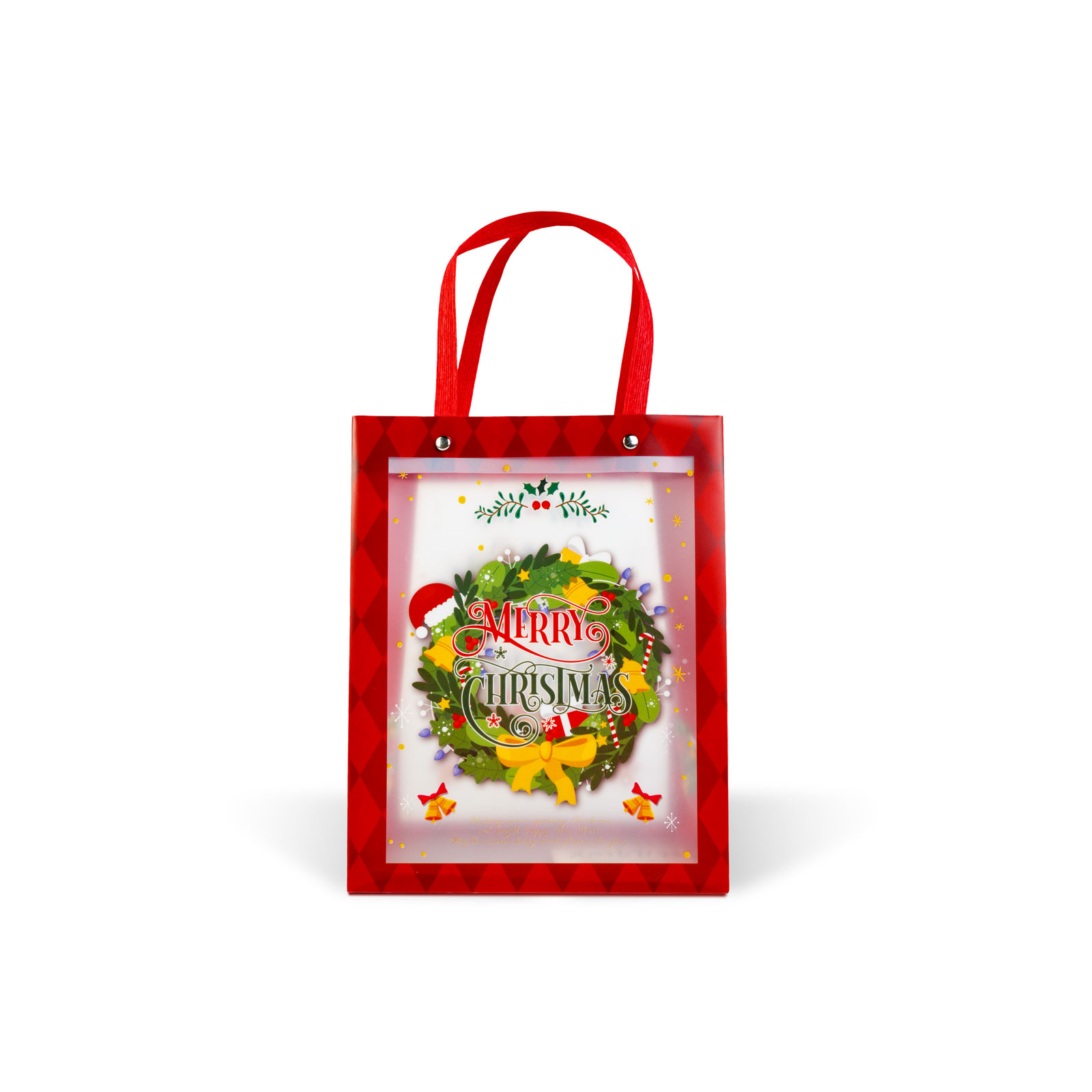 Spríjemnite obdarovávanie touto pôsobivou vianočnou darčekovou taškou! Má praktickú veľkosť, takže je ideálna na menšie prekvapenia, sladkosti alebo menšie darčekové balenia. Dostupná v dvoch sviatočných motívoch – s karavanom alebo vianočným vencom. Priehľadné bočné steny jej dodávajú elegantný a dekoratívny vzhľad.