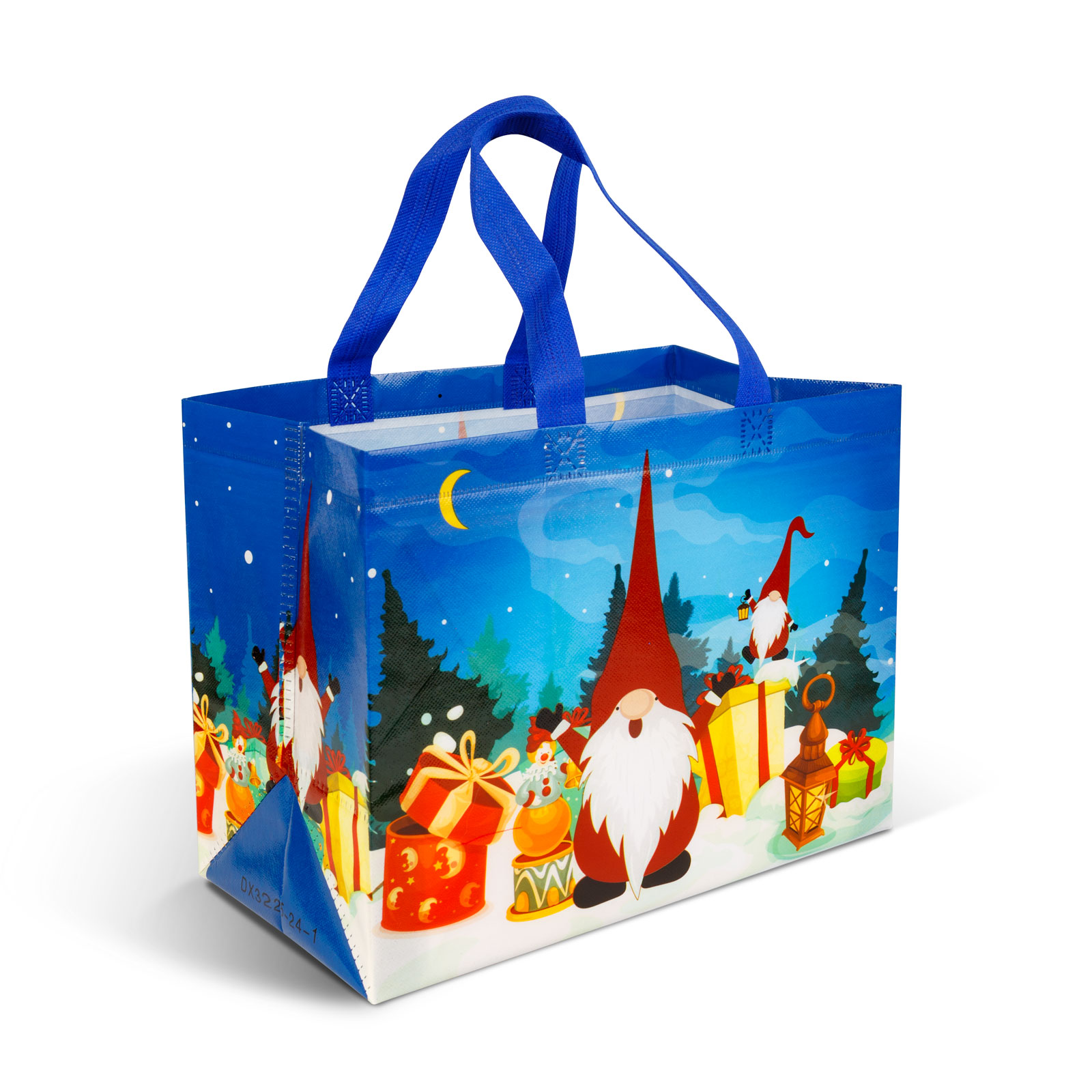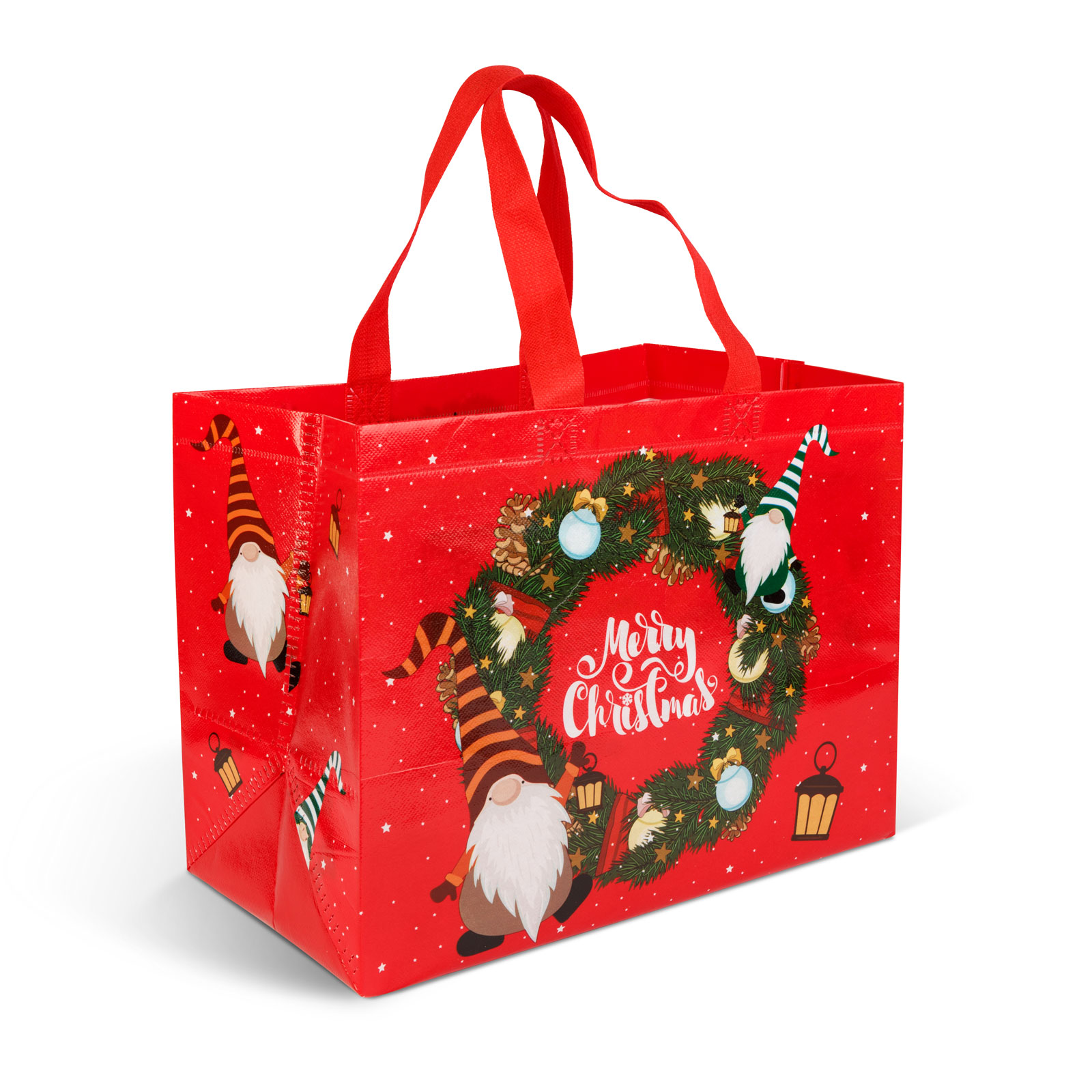 Ak chcete darovať skutočne štýlový a výnimočný darček priateľom a rodine na Vianoce, táto vianočná darčeková taška je ideálnou voľbou! Taška z netkanej textílie s veselým dizajnom je zdobená štyrmi rôznymi vianočnými motívmi. Vďaka odolnému materiálu je ideálna na uloženie alebo odovzdanie darčekov a sladkostí. Veľké držadlá zabezpečujú pohodlné a jednoduché prenášanie.