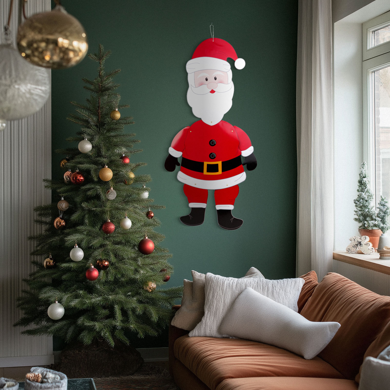 Ozdobte svoju domácnosť s týmto veľkým papierovým Mikulášom.Zaručene rozžiari vianočný interiér, jeho končatiny a hlava sa dajú posúvať a upravovať podľa želania.90 cm vysoký, zavesiteľný vďaka čomu je vhodný na zdobenie veľkých miestností.Je vynikajúci na umocnenie vianočnej atmosféry a poskytuje príjemné prekvapenie pre hostí prichádzajúcich počas sviatočného obdobia.