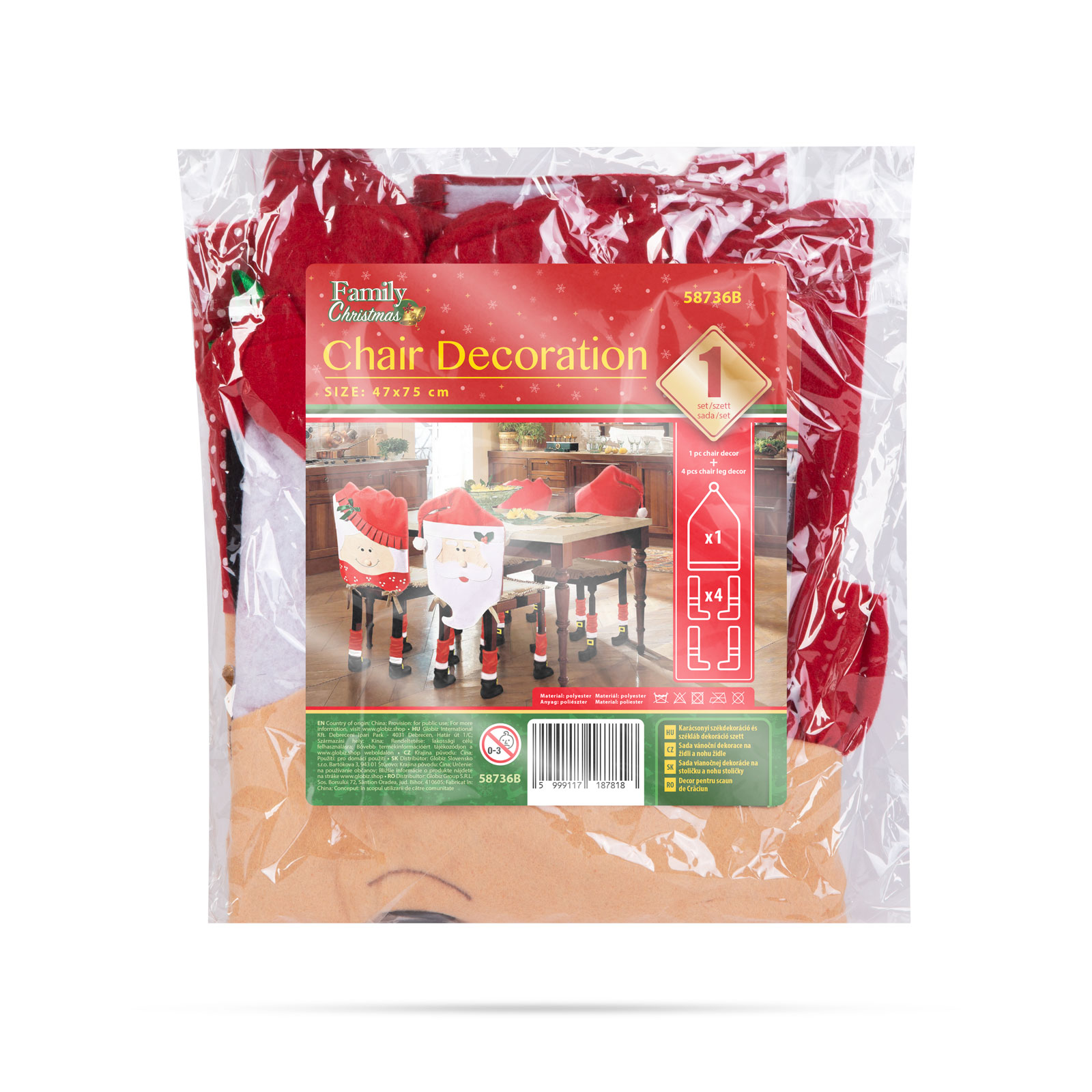 Oblečte svoj domov do slávnostnej nálady s touto súpravou dekorácií na stoličku. Červená / biela farba vyzerá dobre v každom slávnostnom interiéri. Vďaka svojim veľkým rozmerom je kompatibilný s väčšinou stoličiek.