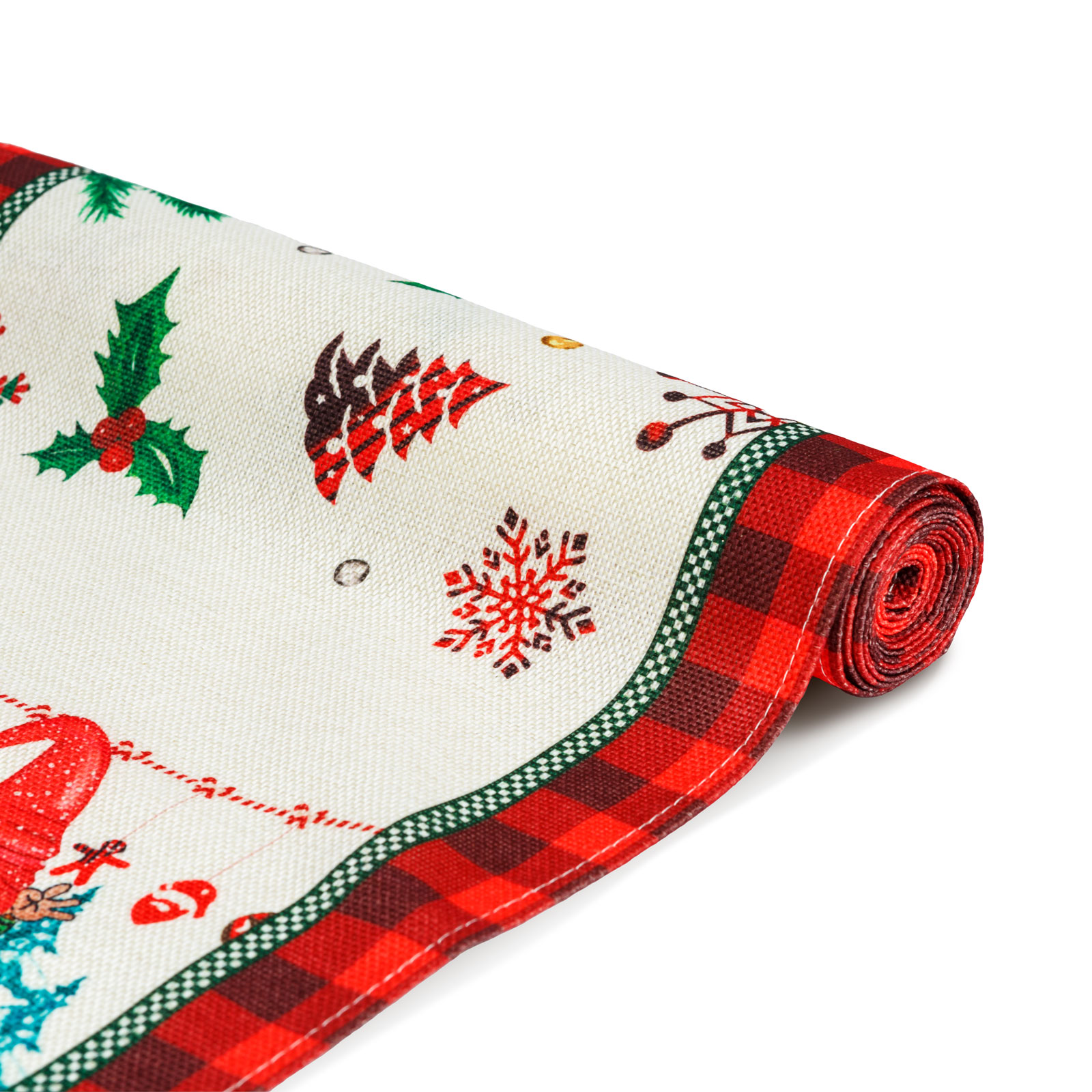 Spríjemnite si sviatočné stolovanie s týmto štýlovým vianočným behúňom! Červeno-čierny károvaný obrus zdobí roztomilý motív s autíčkom a škriatkami, ktorý vytvára veselú a teplú vianočnú atmosféru. Dĺžka 183 cm je ideálna aj pre väčšie stoly. Možno ho použiť samostatne alebo doplniť inými vianočnými dekoráciami – perfektná voľba do domácnosti, kancelárie či na sviatočné podujatia.