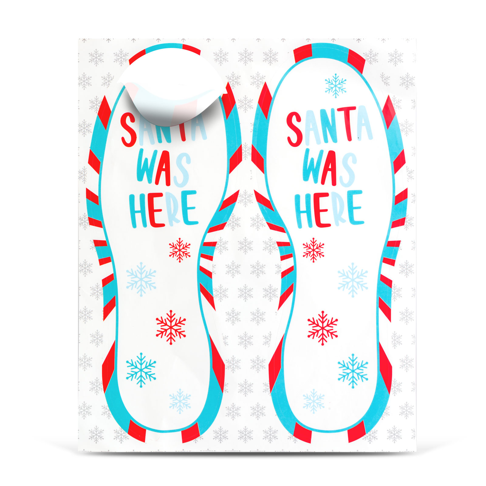 Samolepku je možné jednoducho umiestniť na podlahu, dlažbu alebo dokonca na koberec, čím poskytne deťom nezabudnuteľné prekvapenie. Veselá kombinácia červenej, modrej a bielej farby spolu so snehovými vločkami vytvára sviatočnú atmosféru v každej domácnosti.