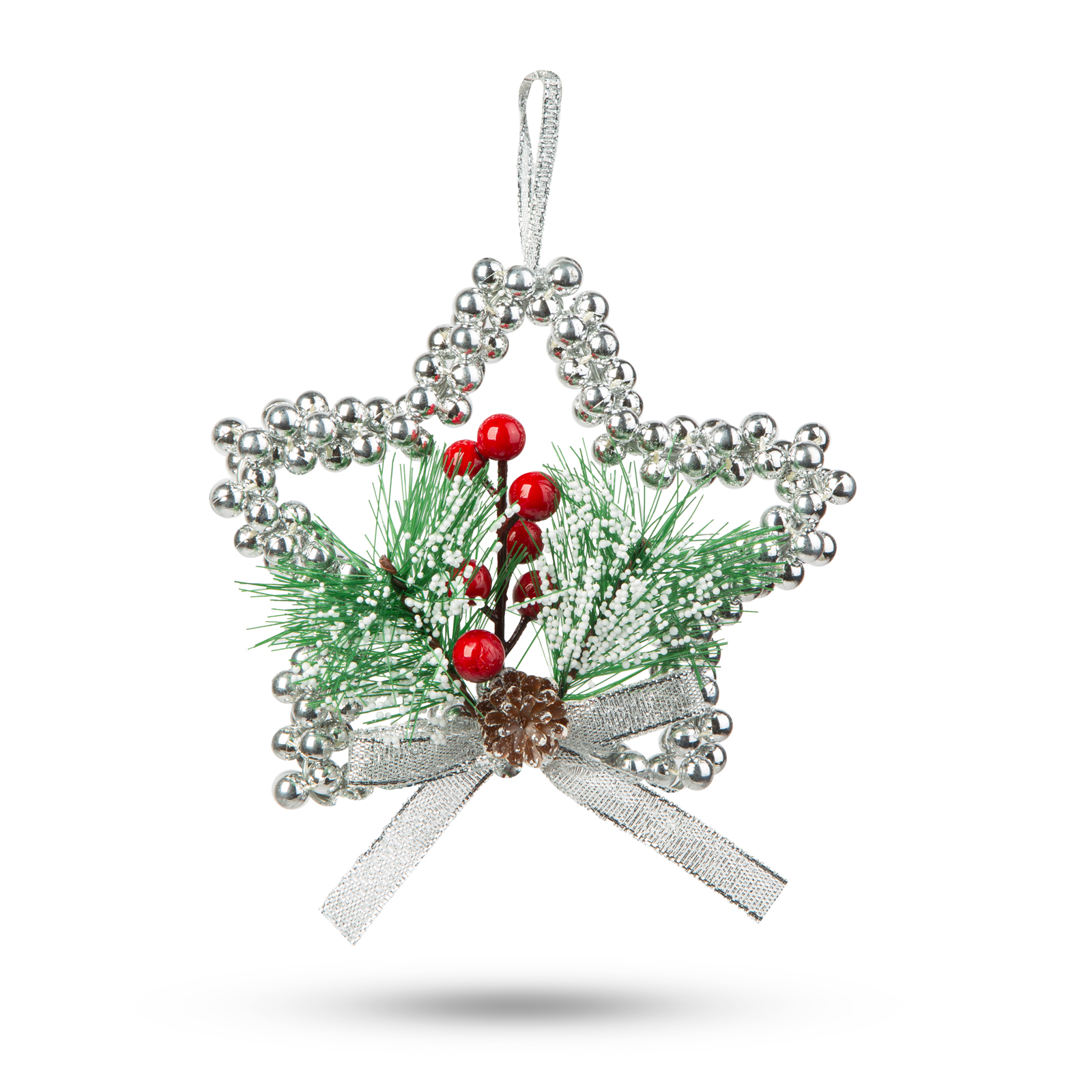 S týmto trblietavým striebornou hviezdou si ľahko vyzdobíte svoj domov počas vianočného obdobia! Pomocou strieborného vešiaka ho ľahko zavesíte na požadované miesto. Hodí sa ako ozdoba na vianočný stromček, ale aj ako ozdoba na dvere či do akejkoľvek vianočnej výzdoby. Pestrofarebné červené bobule, strieborná mašľa a zasnežené zelené konáre a šišky robia dekoráciu naozaj vianočnou. Veniec striebornej farby je univerzálny a nadčasový, takže dokonale ladí s akoukoľvek vianočnou dekoráciou a štýlom.