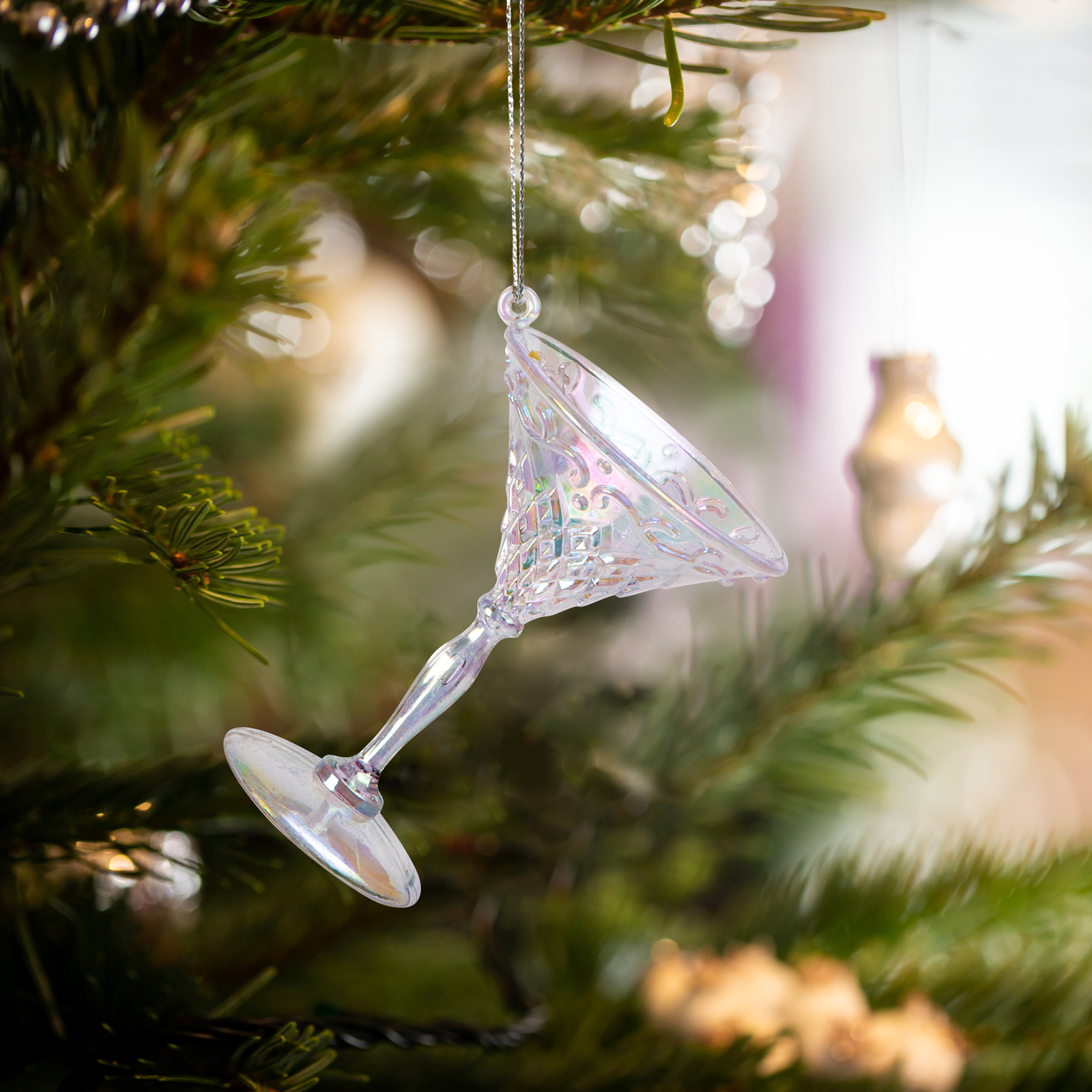 Táto vianočná ozdoba je pohár so špeciálnym dúhovým efektom, ktorý elegantne ozdobí vianočný stromček alebo akýkoľvek iný sviatočný aranžmán. Akrylový ornament je ľahký, ale odolný, takže ho možno rok čo rok znova použiť. Vďaka dúhovému efektu sa farby ornamentu menia v závislosti od tieňov a svetla, čo ho robí ešte magickejším. Vďaka svojmu elegantnému vzhľadu môže byť táto vianočná ozdoba výborným darčekom pre blízkych alebo priateľov.