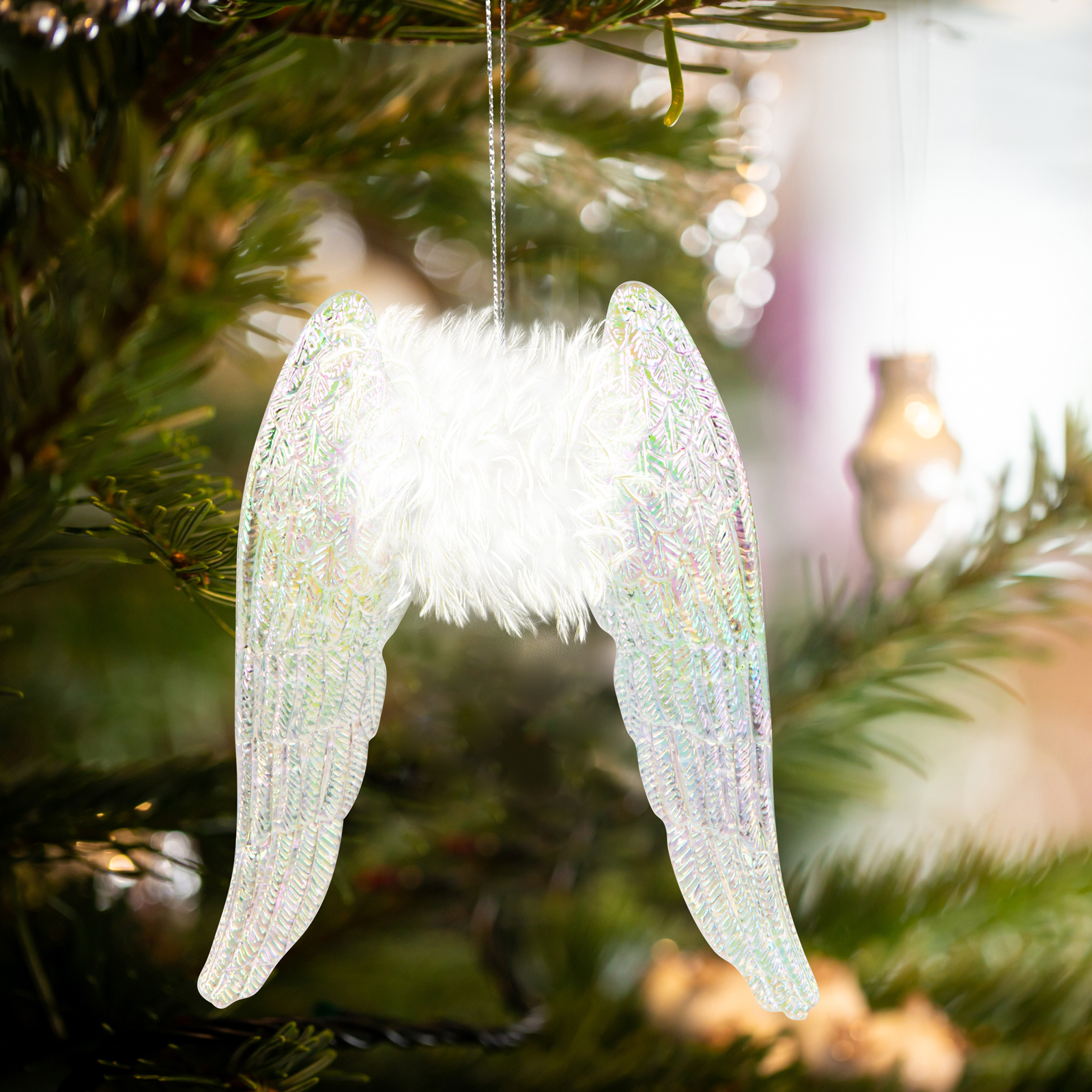 Táto vianočná ozdoba je pár anjelských krídel so špeciálnym dúhovým efektom, ktorý elegantne ozdobí vianočný stromček alebo akýkoľvek iný sviatočný aranžmán. Akrylový ornament je ľahký, ale odolný, takže ho možno rok čo rok znova použiť. Vďaka dúhovému efektu sa farby ozdoby menia v závislosti od tieňov a svetla, čím je vianočná ozdoba ešte čarovnejšia. Vďaka svojmu elegantnému vzhľadu môže byť táto vianočná ozdoba výborným darčekom pre blízkych alebo priateľov.