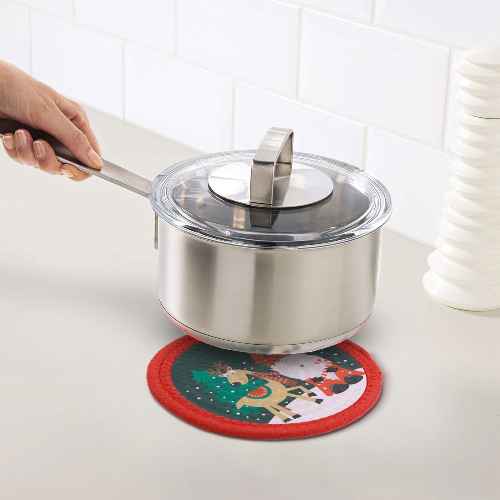 Vianočná podložka na stôl vyrobená z textilu, ktorá zabráni poškodeniu vášho stola a pultu horúcim riadom. Podložka sa hodí do výzdoby slávnostného stola, takže harmónia môže byť úplná.