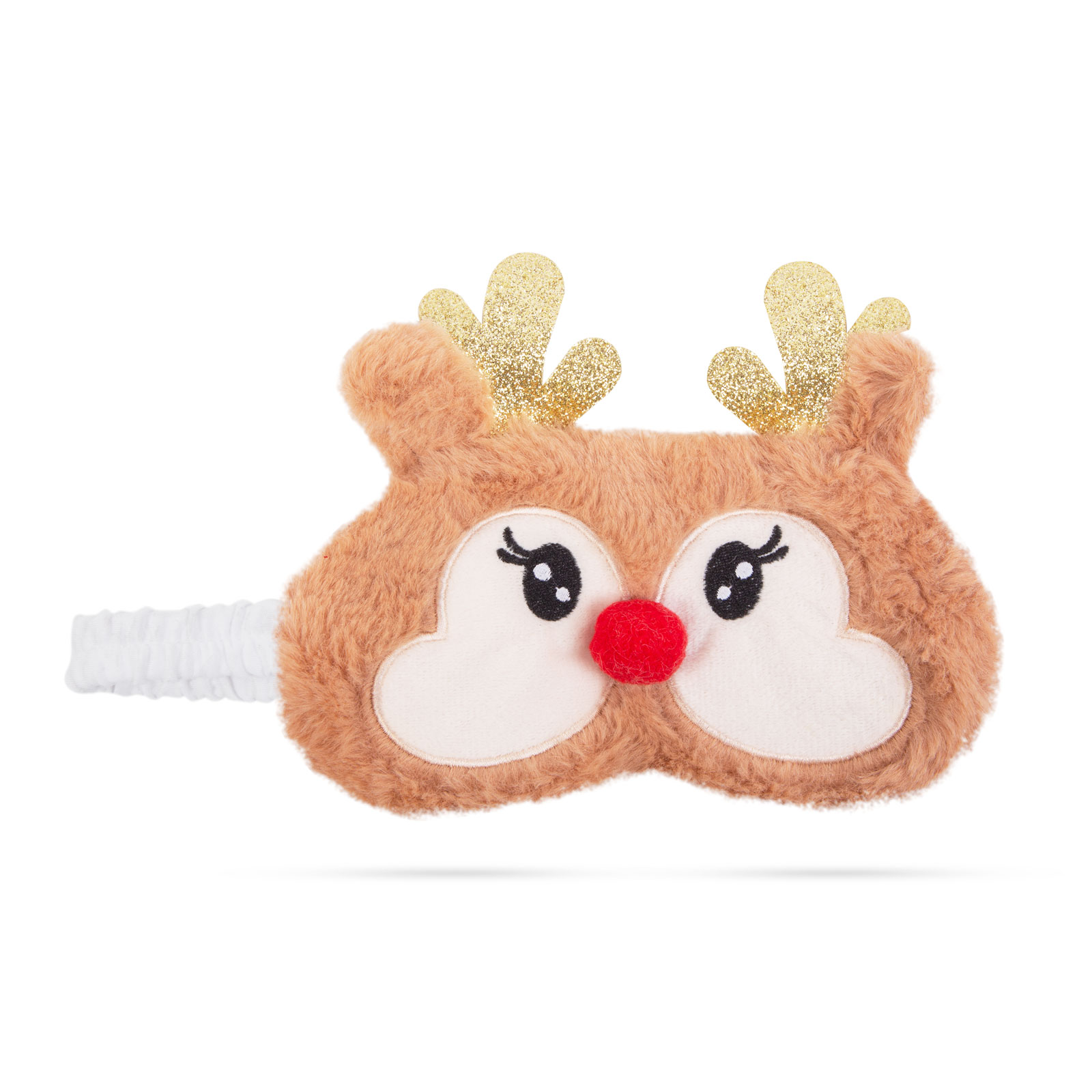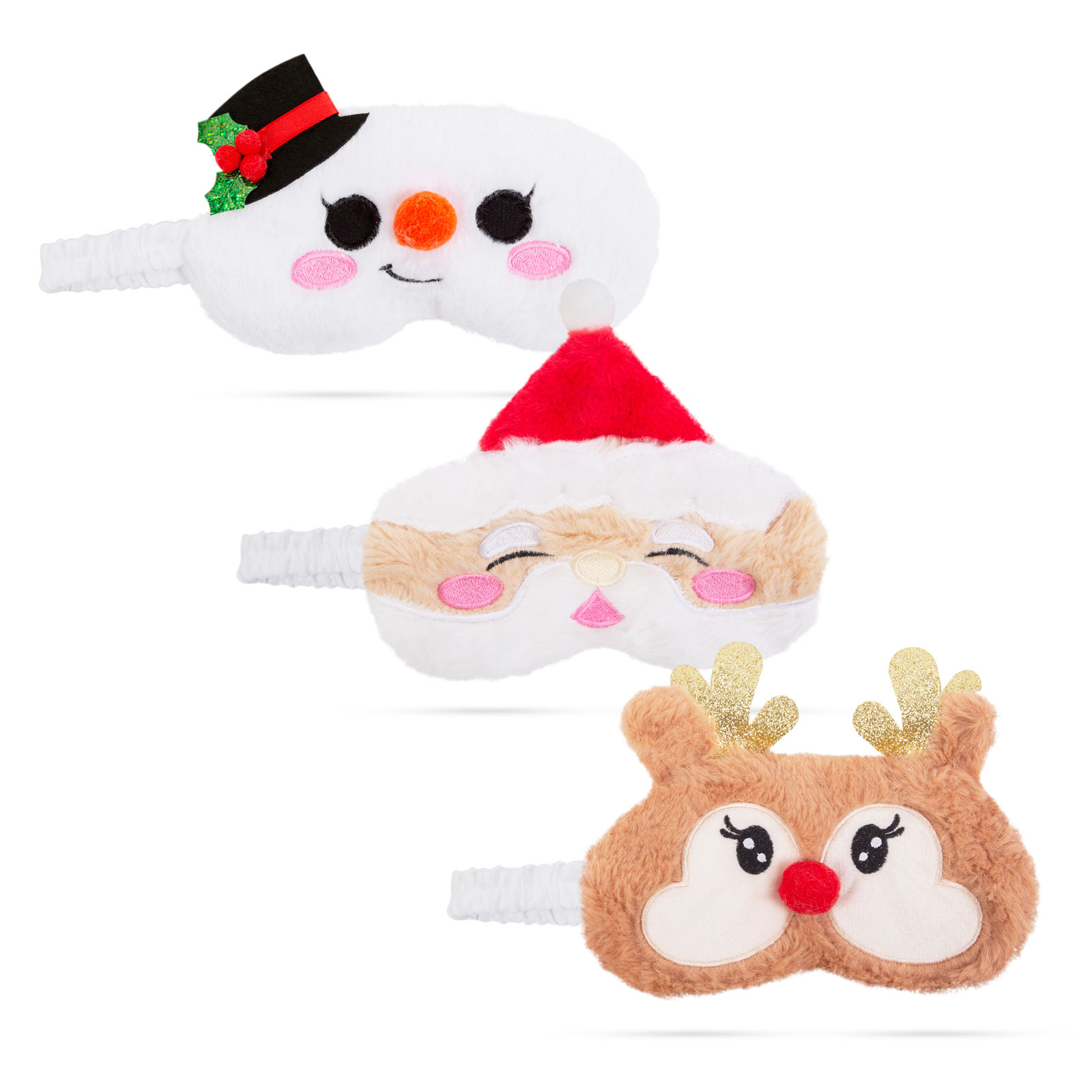 Vianočná pokrývka na oči s postavičkou Mikuláša, snehuliaka alebo soba, ktorý zaisťuje pohodlné nosenie a pokojný spánok. Chráni oči pred okolitým svetlom, čím zaručuje užívateľovi úplný pokoj.