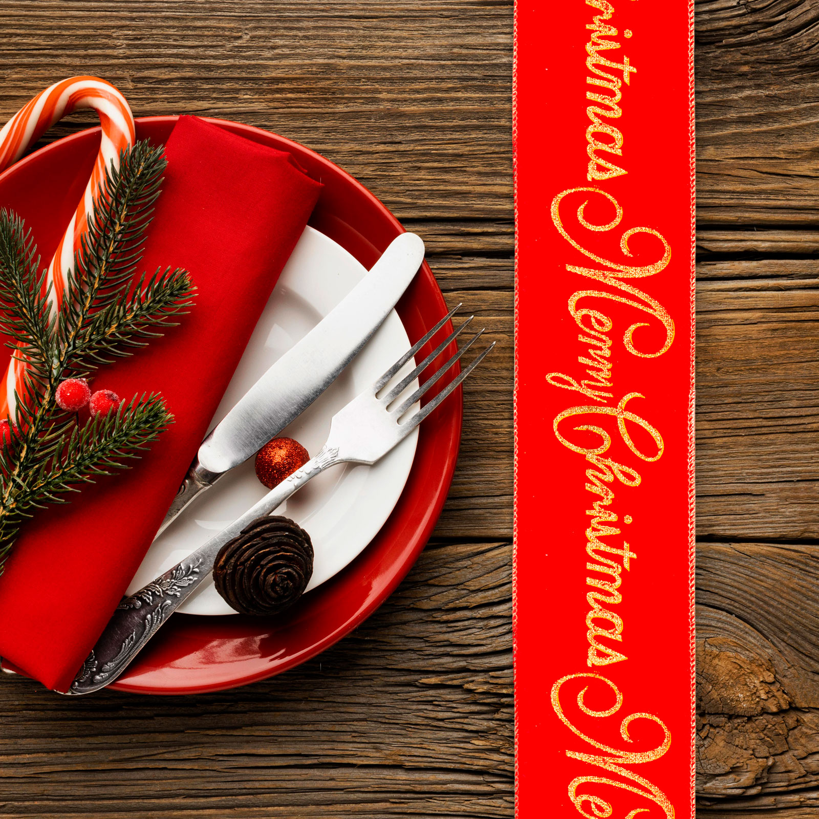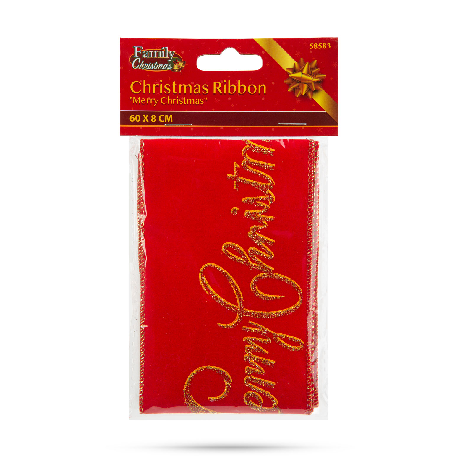 Vianočná stuha - červená - "Merry Christmas" - 60 x 8 cm