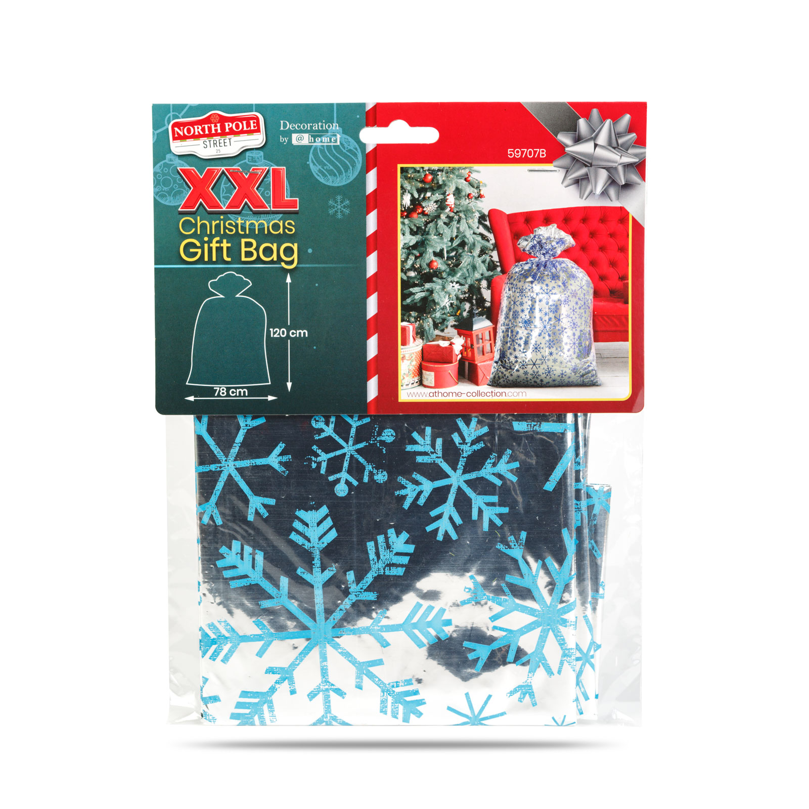 - 1ks Vianočné darčekové vrecko – extra veľké – fólia – snehová vločka – 78 x 120 cm