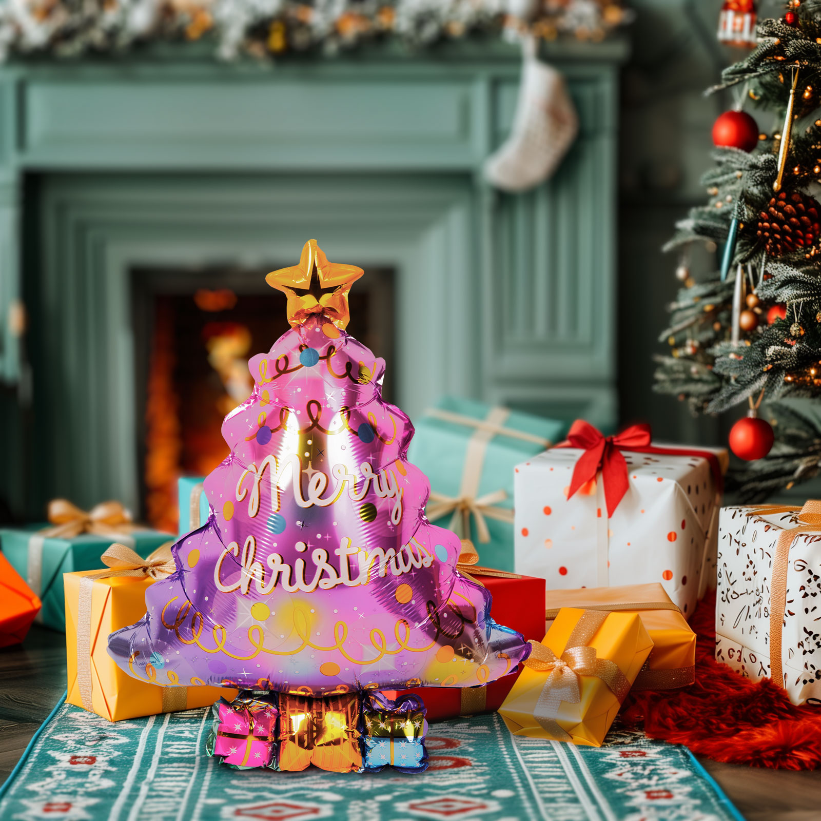 Vianočný balón - hliníková fólia - vianočný strom - 58 x 83 cm