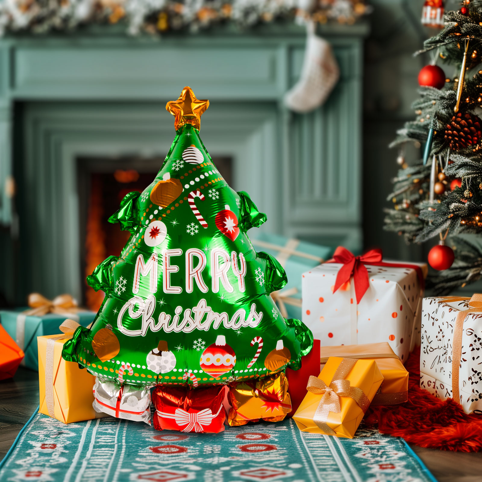 Balóny nemôžu chýbať v žiadnej vianočnej výzdobe!Tento veľký balón v tvare vianočného stromu z hliníkovej fólie je výborným darčekom pre deti, ale dá sa použiť aj na dekoráciu rôznych miestností.Pre ľahké nafukovanie je súčasťou balenia nafukovacia trubica!
