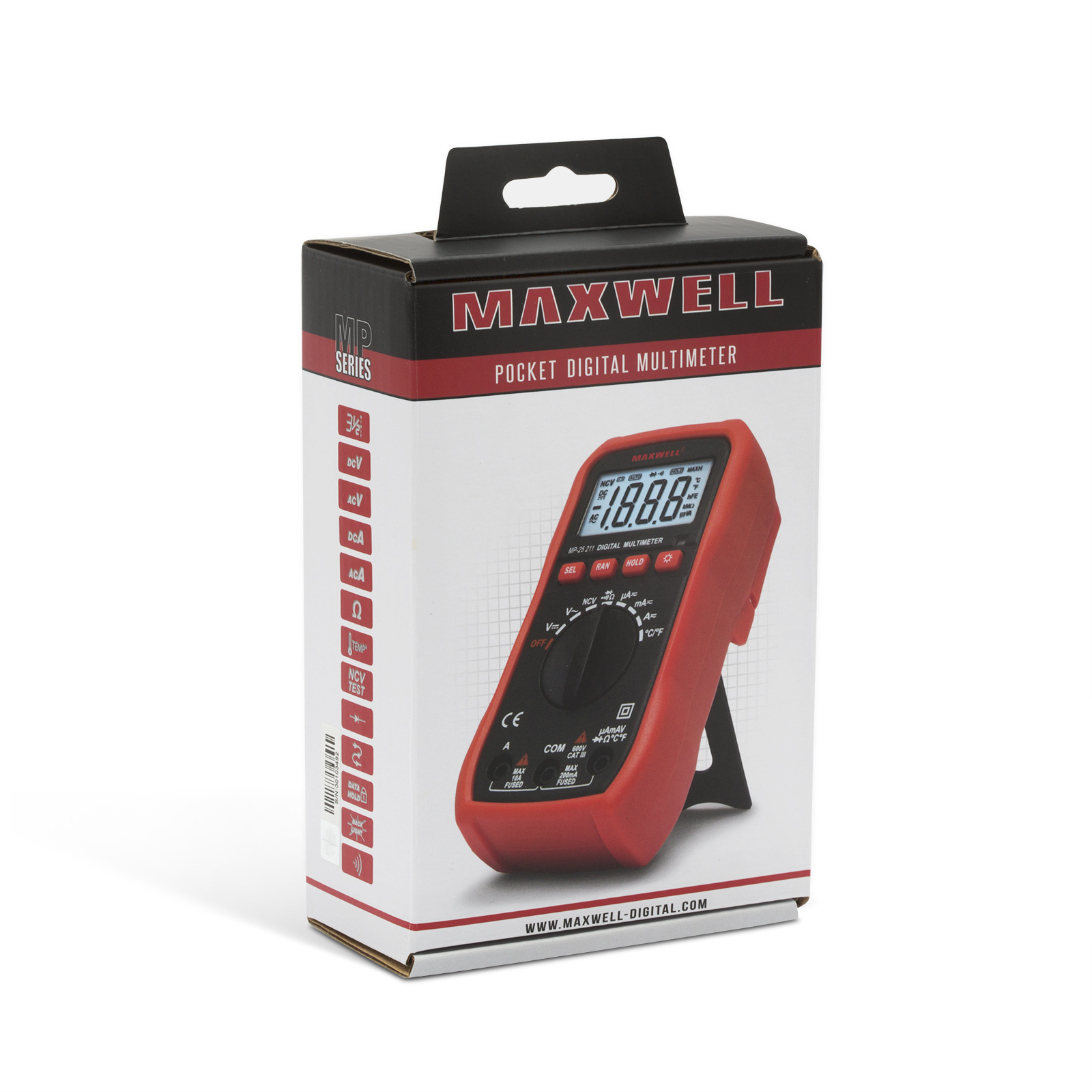 Nová séria MP multimetrov rozširuje ponuku Maxwell kompaktných meracích prístrojov. Okrem základných funkcií je tento vybavený podsvietením a jeho používanie uľahčuje automatická zmena meracích rozsahov. Robustná konštrukcia meracieho prístroja zabezpečuje bezproblémové použitie za akýchkoľvek podmienok.