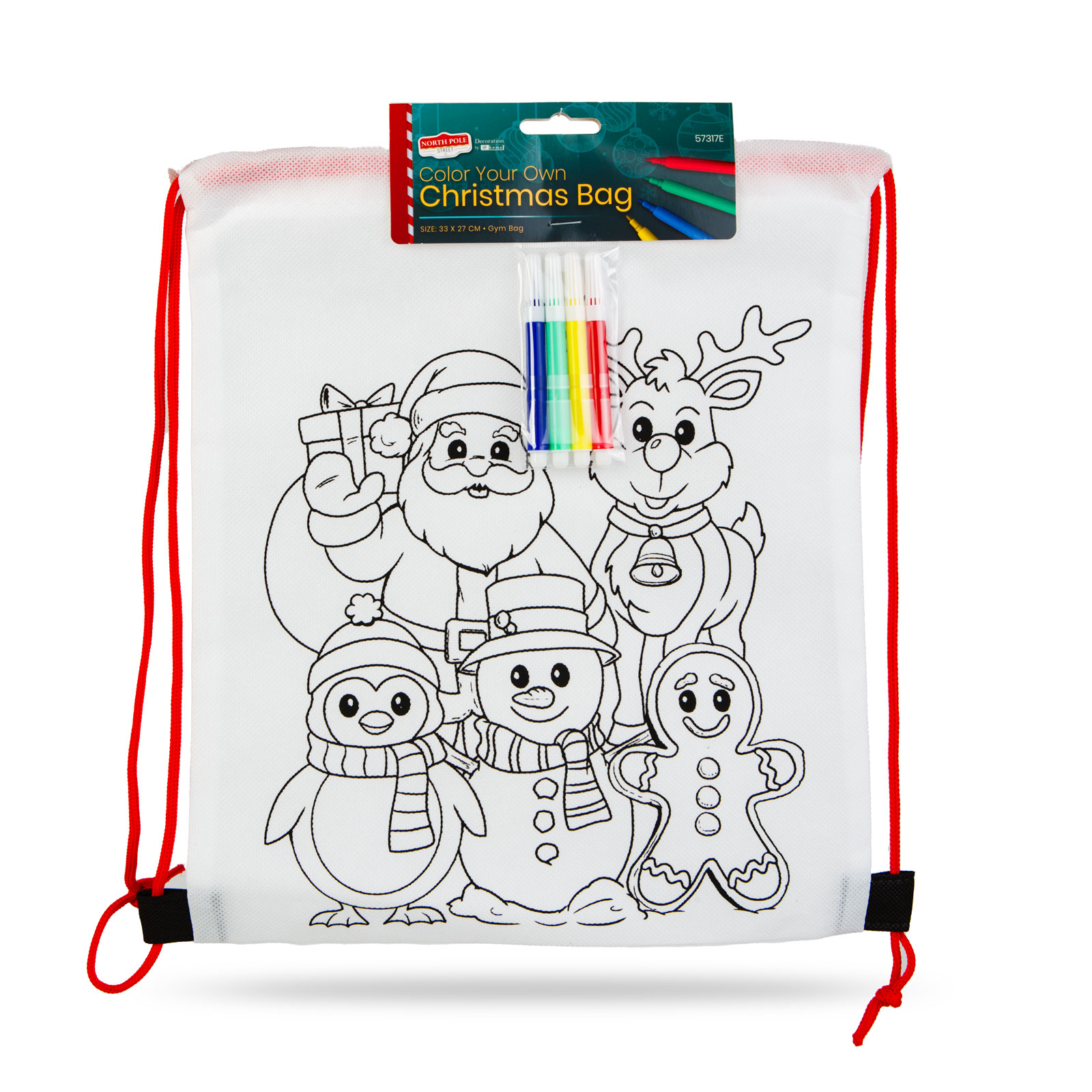 Vyfarbite si vlastný vak na telesnú výchovu so súpravou farebných fixiek! Dva v jednom: vak a kreatívna zábava pre deti. Pri vyfarbovaní vložte medzi dve vrstvy materiálu hrubší papier, aby sa farba nedostala na zadnú stranu.